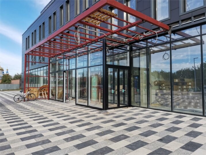 распашные алюминиевые двери (вход в магазин или жилой дом),